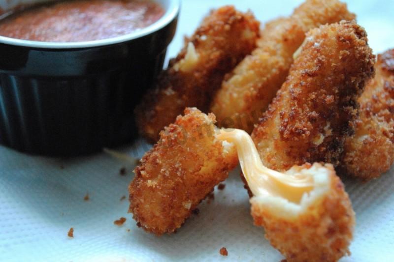 Мы привыкли что, в основном, закуску к праздничному столу мы подаем холодными: брускетты, нарезки мясные и сырные, рулетики, фаршированные овощи и так далее. Но как то хочется разнообразить этот привычный список и сегодня мы поделимся с вами секретом как приготовить оригинальные горячие закуски из твердого сыра. Набор продуктом что для первой что до второй закуски будет практически одинаковым, отличаться будут только техники приготовления. И так для горячих закусок нам понадобится: твёрдый сыр, яйца, вода, специи, панировочные сухари, майонез или сметана. Сразу хотим вас предупредить, если вы выберете неподходящий сыр для приготовления закусок, ничего не получиться. Ведь именно сыр главный ингредиент в наших блюдам, поэтому прислушайтесь к нашим советам. Для этих приветов закусок нужно выбирать нежные на вкус сыры, которые имеют способность хорошо плавиться, ведь именно это нам и нужно. Лучше всего подходят такие сыры как моцарелла (твёрдая), Гауда, сулугуни (только не слишком соленый). Ни в коем случаи не берите сыр с дырками, этот выбор очень сильно усложнит вам работу. Начнём с первого варианта закуски - шарики из сыра. На самом деле, готовится очень просто, но нужно следовать нашим советам и тогда закуска получается идеальной. С начала натрите сыр на крупной терке. Потом возьмите яйцо, хорошенько взбейте, добавьте соль и перец. Возьмите глубокую миску и смешайте сыр и яичную смесь. Также можно добавить столовую ложку майонеза, тогда масса будет лучше держаться и нам будет легче лепить шарики. Когда все готово, начинайте лепить шарики размером около 3 см. Когда все шарики налеплены отправьте их в морозилку часиков так на два. Затем возьмите котелок с толстым дном, налейте достаточное количество растительного масла и хорошенько разогрейте. Возьмите два яйца взбейте с специям и насыпке на отдельную тарелку панировочные сухари. Достаньте шарики с морозилки и по очереди опускайте в яичную смесь и обваляйте в панировочных сухарях и отправляйте в растительное масло. Вторая закуска делается совсем просто. Сыр нарежьте полосками, толщиной 2 см. Приготовьте яичную смесь в которую мы будем макать ломтики сыра и насыпьте панировочные сухари. Перед тем как макать сыр в яйцо и сухари (повторять два раза, кляр получается крепче), опустите его в ледяную воду. Жарить сыр нужно в большом количестве растительного масла. ...