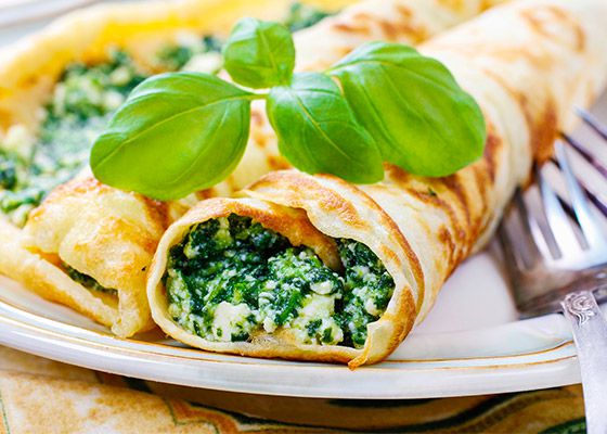 We are all probably pancake lovers. Pancakes are thin flour flatbreads that are fried in a frying pan with a little vegetable oil. Pancakes can be made with different fillings, sweet and savory, and can also be eaten empty. Today we will talk about savory pancakes with spinach and cheese filling, they are simply delicious and are perfect for both lunch and dinner.To prepare the pancake dough we will need: eggs, wheat flour, milk, salt, sugar, vegetable oil. At the very beginning, you should beat the eggs thoroughly; they do not need to be separated into whites and yolks. You can beat the eggs with a mixer or a whisk, but if you choose a mixer for this process, be careful not to beat the eggs too much. When the eggs are beaten, you can add some of the milk and all the flour, this is important. Why add only part of the milk first? Because this will make it easier to stir the flour and break up any lumps that have formed. After you have mixed the flour well, you will have a thick mixture, at this point you can gradually add the remaining milk. Add salt and a little sugar to the mixture, this will make the taste of the pancakes special and very pleasant.At the very end, you can add vegetable oil to the mixture. You can add a sufficient amount of oil there and then you will no longer need to pour vegetable oil into the pan while frying, the pancakes will turn over easily..Spinach filling is very easy to make. But first, choose good spinach. Make sure the leaves are firm and deep green. If the spinach leaves are soft and have dark spots on them, it means they have already wilted and are not fresh. Before cooking spinach, rinse it thoroughly under cold running water and tear off the stems. Then chop them very finely. Then chop them very finely and place them in a saucepan with water and cook the spinach for 5-10 minutes, and then drain the water. Fry the onion in a frying pan and add the boiled spinach to it and simmer for another couple of minutes. To make the filling tastier, you can add a couple of cloves of garlic and spices. While the sautéed spinach has cooled, you can prepare the fetta for the filling.For the filling, it is best to choose a fattier cheese, then the filling will stick better. Feta can be cut into cubes or chopped as you wish, just not too finely. Mix feta with spinach and the filling is ready, you can form pancakes. .To make pancakes tastier, fry them in soft egg batter; it is best to fry them in butter....